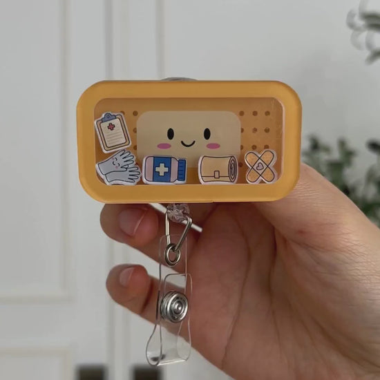 Cute bandage shaker badge reel for nurses and healthcare workers. Durable retractable ID holder with alligator clip. Perfect for medical staff and students.