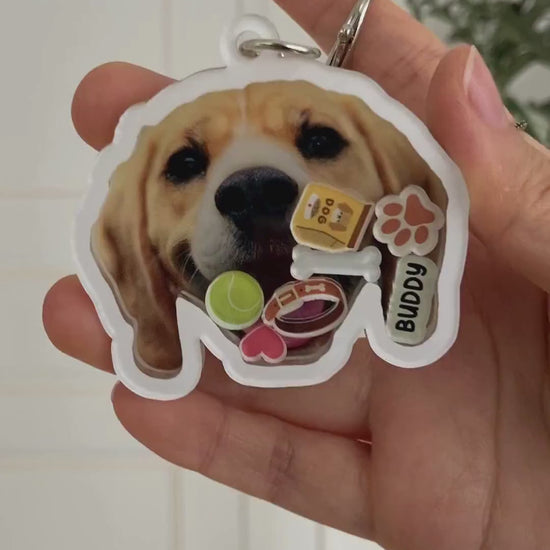 Personalized pet shaker keychain made from your dog or cat’s photo. Acrylic, durable, and super cute. Perfect custom gift for pet lovers.